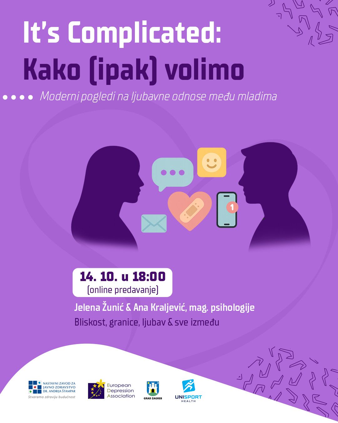 Online predavanje pod nazivom “It’s Complicated: Kako (ipak) volimo” održat će se u utorak, 14.10.2025. u 18:00 h putem Zoom platforme.