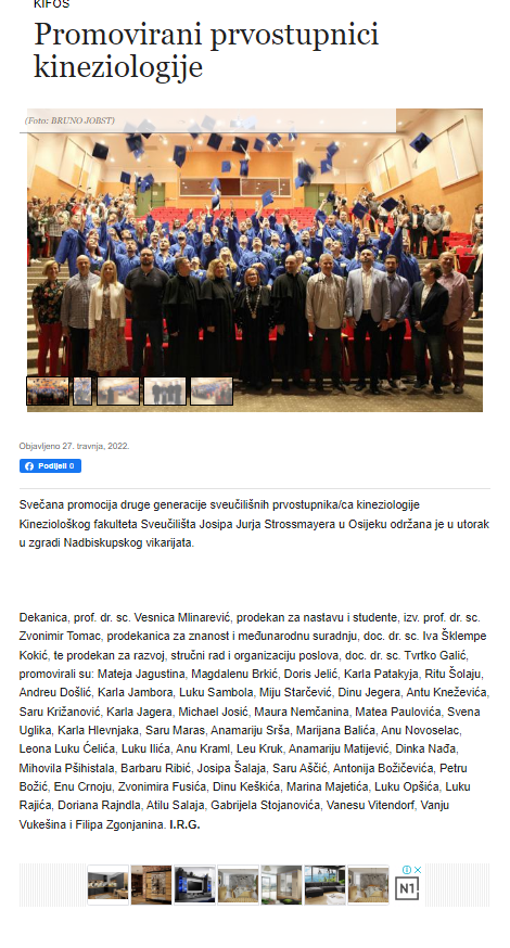 PROMOVIRANI PRVOSTUPNICI KINEZIOLOGIJE