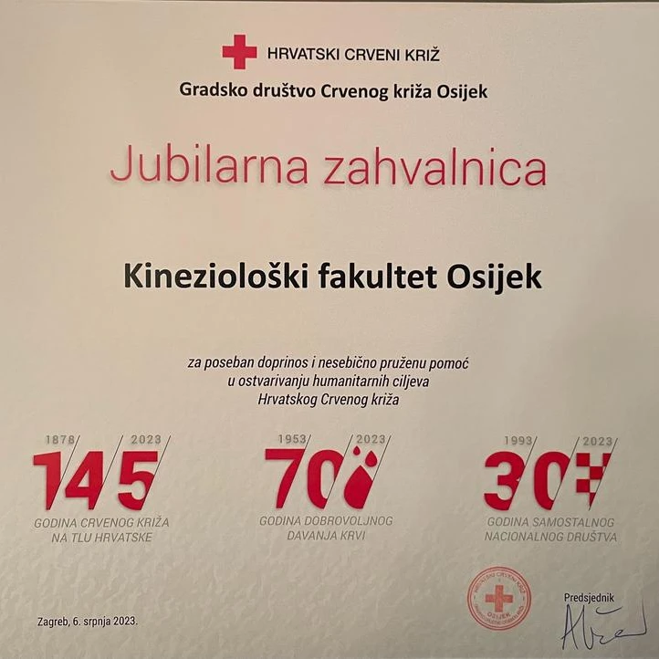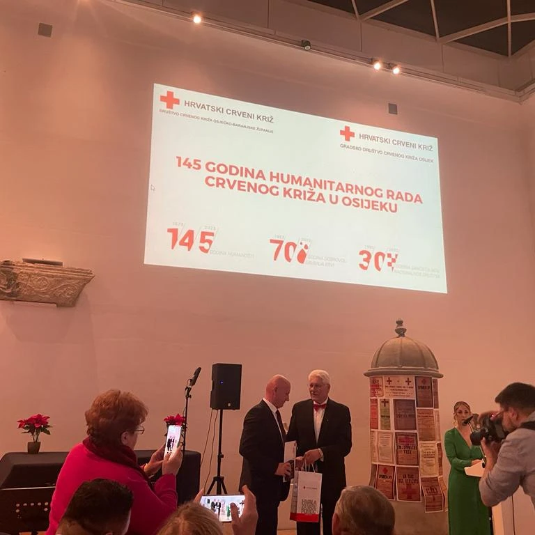 U Arheološkom muzeju 8. prosinca 2023. godine Crveni križ Osijek proslavio je veliku 145. obljetnicu humanitarnog rada i 70. obljetnicu osnutka terenske jedinice. Primili smo jubilarnu zahvalnicu za partnerstvo u edukativnim programima i različitim aktivnostima Gradskog Crvenog križa Osijek. Hvala što su prepoznali naš rad, ponosni smo na doprinos i partnerstvo koje smo ostvarili s Crvenim križem Osijek.
