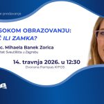 U utorak 14. travnja 2026. godine na Kineziološkom fakultetu Osijek održat će se gostujuće predavanje, prof. dr. sc. Mihaele Banek Zorica pod naslovom UI u visokom obrazovanju: pomoć ili zamka?, a s početkom u 12:30 sati u dvorani Pampas. Predavanje će se održati u organizaciji Knjižnice čiji je sadržaj podrška informacijskom opismenjavanju korisnika u suradnji s nastavnicima.