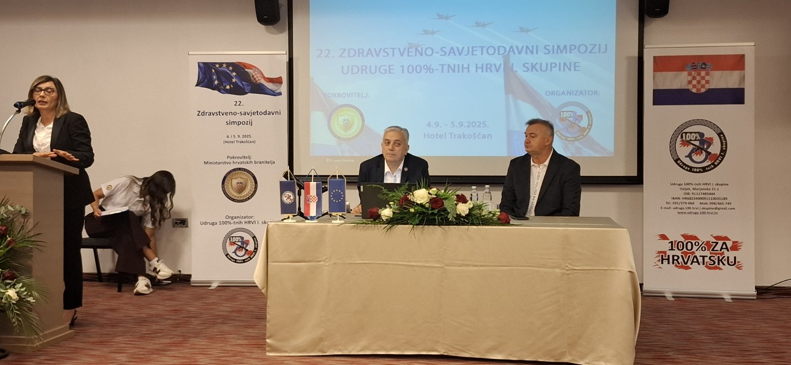 Na poziv Udruge 100%-tnih HRVI 1. skupine, predstavnici Kineziološkog fakulteta Osijek sudjelovali su na 22. Zdravstveno-savjetodavnom simpoziju koji se održao u Trakošćanu 4. i 5. rujna 2025. godine. Fakultet su predstavljali dekan izv. prof. dr. sc. Zvonimir Tomac, asistent Zoran Špoljarić te studenti Fran Pedić i Mario Sambol.