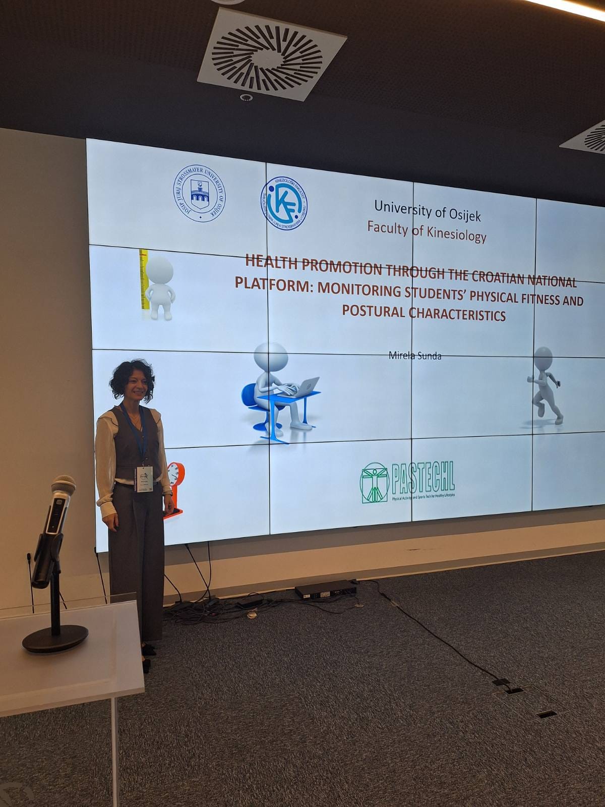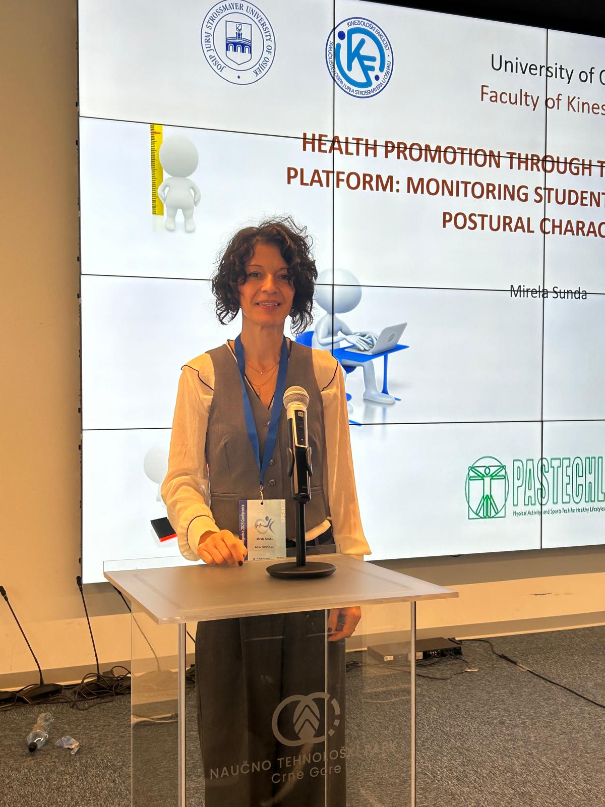 Kineziološki fakultet Osijek ponosni je partner ove prestižne međunarodne konferencije, na kojoj je fakultet predstavljala doc. dr. sc. Mirela Šunda. Kao pozvani predavač, profesorica Šunda održala je zapaženo izlaganje u kojem je sudionike upoznala s nacionalnim projektom usmjerenim na praćenje tjelesne spremnosti i obilježja tjelesnog držanja u hrvatskom odgojno-obrazovnom sustavu. U svom je izlaganju istaknula važnost sustavnog praćenja tjelesne spremnosti djece i mladih, primjenu znanstveno utemeljenih pristupa te predstavila nove digitalne alate i metodološke postupke koji omogućuju prikupljanje i analizu podataka o tjelesnoj spremnosti i posturalnom statusu učenika.