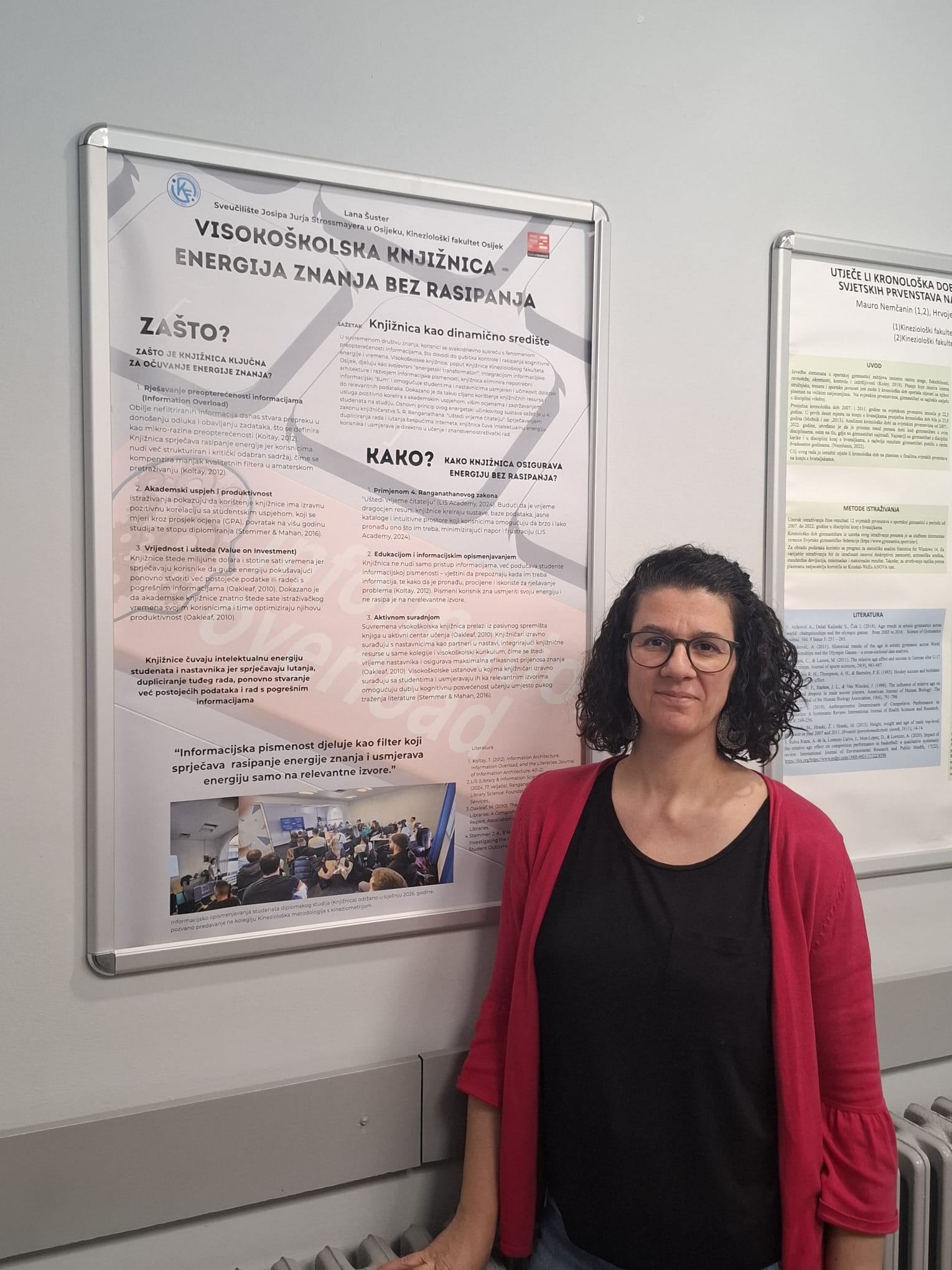 Knjižnica i ove godine sudjeluje s posterskim izlaganjima na Festivalu znanosti 2026. Ovogodišnja krovna tema, „Energija“, poslužila je kao polazište za promišljanje o energiji ne samo kao osnovi našeg postojanja, već i kao ključnom pokretaču cjelokupnog evolucijskog procesa. Festival se na nacionalnoj razini održao pod pokroviteljstvom Ministarstva znanosti i obrazovanja Republike Hrvatske, dok je nositelj organizacije za područje Osijeka i susjednih županija bilo Sveučilište Josipa Jurja Strossmayera u Osijeku. Ovogodišnji bogati program okupio je ukupno 862 sveučilišna sudionika, koji su u suradnji s brojnim osnovnim i srednjim školama te dječjim vrtićima prezentirali impresivan broj aktivnosti, uključujući i 158 posterskih izlaganja. Knjižnica Kineziološkog fakulteta Osijek sudjeluje kroz znanstveno-stručni doprinos ovom prestižnom događaju predstavljanjem dvaju posterskih izlaganja, koja su povezala temu energije s informacijskim znanostima i kognitivnom ergonomijom: „Visokoškolska knjižnica – energija znanja bez rasipanja“ Autorica: Lana Šuster. Rad tematizira ulogu suvremene visokoškolske knjižnice kao dinamičnog središta i svojevrsnog „energetskog transformatora“. U vremenu kada se korisnici svakodnevno susreću s fenomenom preopterećenosti informacijama, autorica ističe kako informacijska pismenost djeluje kao nužan filter. Edukacijom i usmjeravanjem korisnika na relevantne izvore, knjižnica izravno sprječava gubitak kontrole i besciljno lutanje bespućima interneta te time čuva intelektualnu, odnosno kognitivnu energiju studenata i nastavnika; „Trčanje po stazi vs. trčanje po papiru: Utjecaj ‘podloge’ na mentalnu izdržljivost: energetska cijena kognitivnog maratona – pregled neuroznanstvenih spoznaja“ Autorice: Lana Šuster, Klara Findrik, Iva Macan. Ovo izlaganje pružilo je uvid u neuroznanstvene dokaze o energetskoj potrošnji mozga tijekom čitanja znanstvene literature. Autorsko istraživanje oslanja se na usporedbu medija: čitanje složene literature s papira metaforički je prikazano kao trčanje po brzoj „tartan stazi“, dok je čitanje s ekrana, zbog brojnih vizualnih distrakcija, uspoređeno s kognitivno iscrpljujućim trčanjem po „dubokom blatu“. U tom kontekstu, prostor knjižnice definiran je kao „teretana za mozak“ – strogo kontrolirano okruženje bez ometanja koje omogućuje postizanje maksimalne kognitivne ekonomičnosti i izdržljivosti. Sudjelovanjem na Festivalu znanosti 2026., Knjižnica Kineziološkog fakulteta Osijek iznova je potvrdila svoju ključnu ulogu u akademskoj zajednici. Visokoškolska knjižnica i akademsko okruženje za učenje izravno pridonose ne samo boljem uspjehu i racionalnom gospodarenju intelektualnom energijom naših korisnika. Zahvaljujemo svima koji su posjetili naša izlaganja i podržali rad Knjižnice!