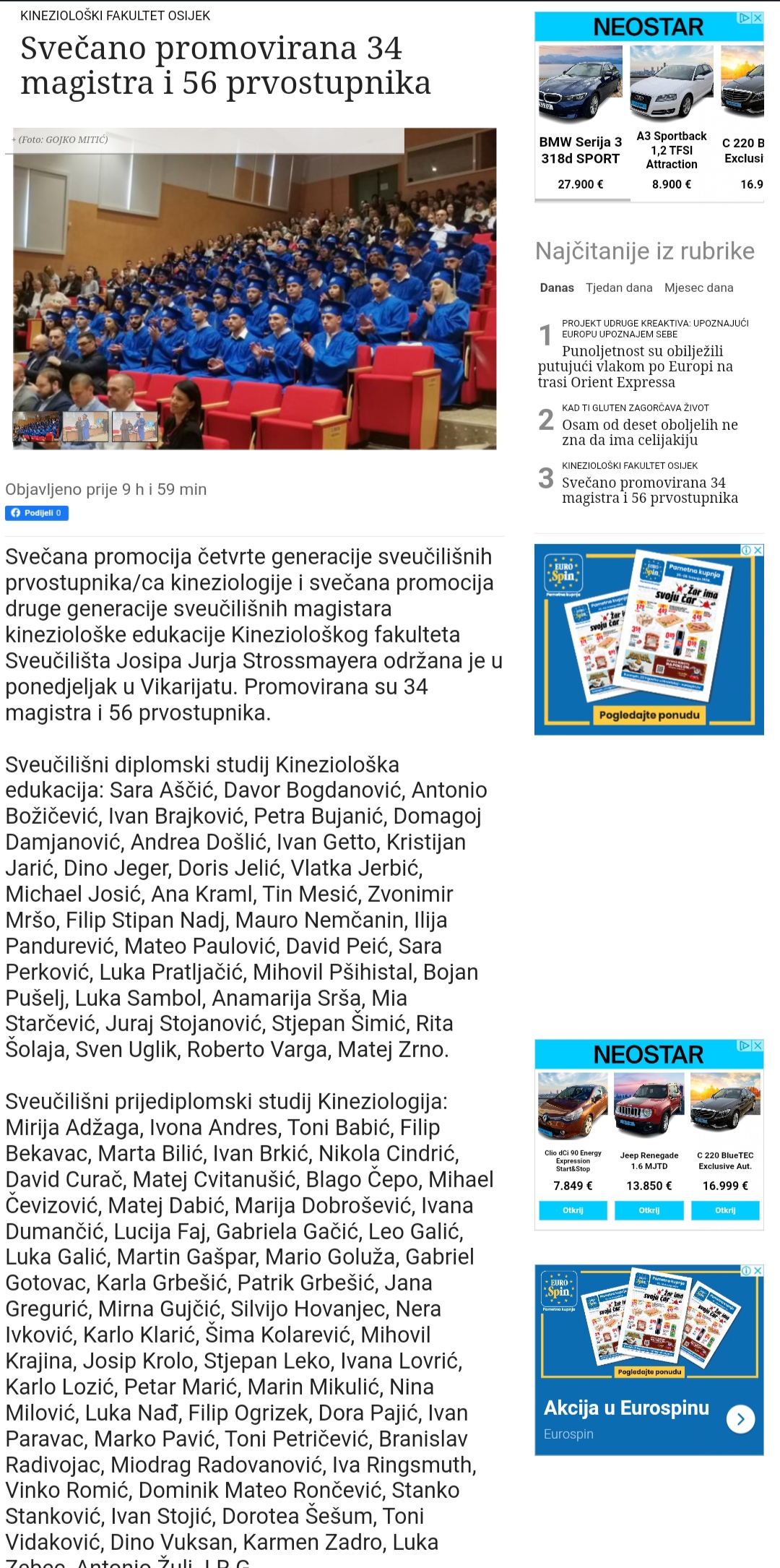Održana svečana promocija 34 magistra i 56 prvostupnika