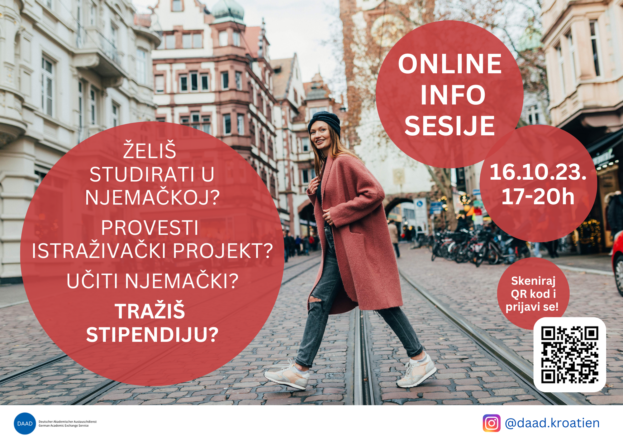U listopadu DAAD tim Hrvatska organizira tri info sesije s općim informacijama o studiranju, istraživanju u Njemačkoj te mogućnostima financiranja: