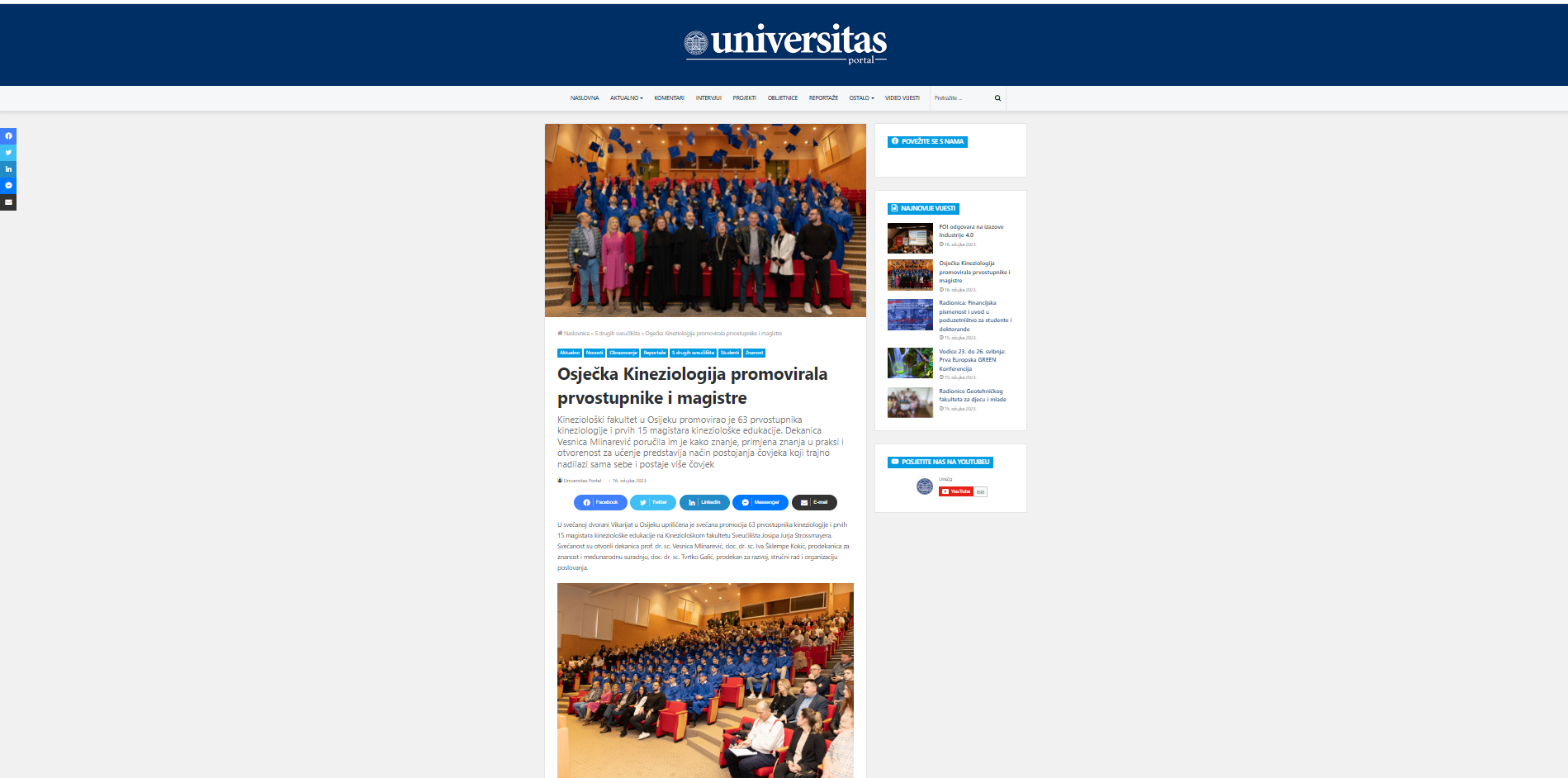 Osječka Kineziologija promovirala prvostupnike i magistre
