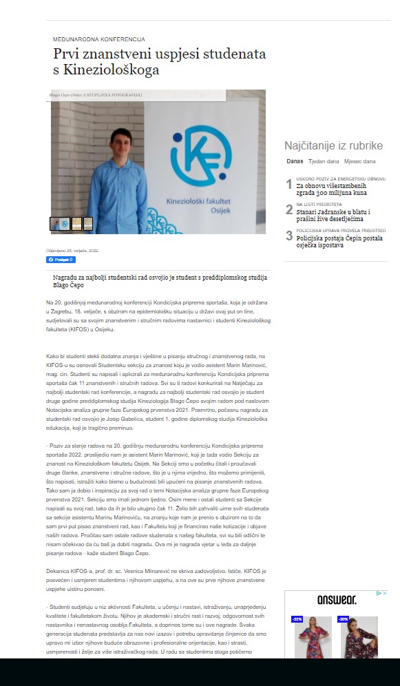 Prvi znanstveni uspjesi studenata Kineziološkoga