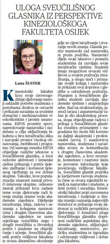 27.02.2024 Sveučilišni glasnik- 23. veljače 2024.- Lana Šuster, viša knjižnjičarka Kineziološkog fakulteta Osijek
