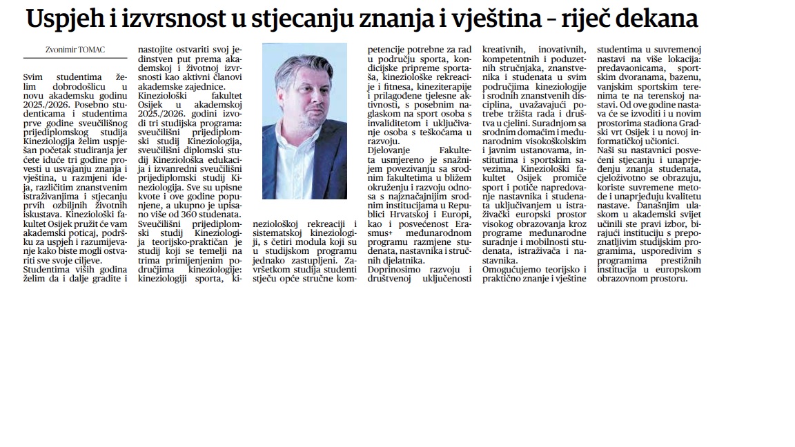 Sveučilišni diplomski studij Kineziološka edukacija