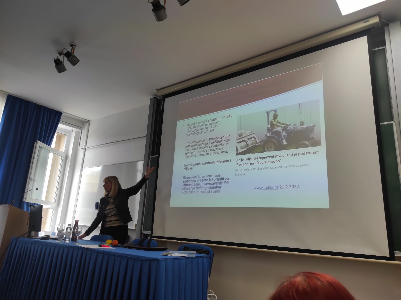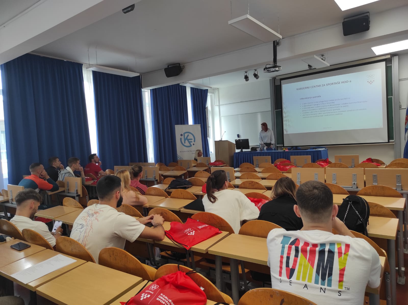 Predavanje je bilo namjenjeno studentima Kineziološkog fakulteta Osijek i široj zainteresiranoj javnosti, a koliko su naši predavači cijenjeni i rado slušani, govori podatak da je dvorana Pampas na KIFOS-u bila ispunjena do posljednjeg mjesta. Pero i Tamara su na vrlo osebujan, zanimljiv i nadasve inspiritivan način ispričali svoj životni put, prisjetili se svojih početaka u profesionalnoj karijeri, podijelili s nama svoje dugogodišnje iskustvo i stručna znanja povezana sa specifičnostima i izazovima rada s vrhunskim sportašima te podijelili brojne savjete. Posebno su istaknuli važnost svojeg obrazovanja na Kineziološkom fakultetu te pozvali studente na kontinuirano stručno usvajanje novih i usavršavanje postojećih znanja i praćenja novih metoda rada, jer “Znanje je moć”, rekao je Francis Bacon engleski filozof, a naši predavači ponovili i nekoliko puta.