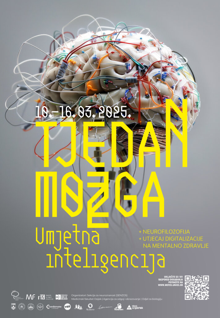 Tradicionalna manifestacija pod nazivom 24. Tjedan mozga manifestacija je koju svake godine organiziraju prof. dr. sc. Marija Heffer, predsjednica Katedre za medicinsku biologiju i genetiku te SenzOs (Sekcija za neuroznanost Osijek), u suradnji s Odjelom za biologiju te s ciljem popularizacije neuroznanosti. Ove godine glavne teme su umjetna inteligencija, neurofilozofija te utjecaj digitalizacije na mentalno zdravlje. Raznovrsni programi, uključuju približno 50 predavanja otvorenih za javnost u Rektoratu Sveučilišta, a tim povodom u knjižnici KIFOS-a održat će se 13. ožujka 2025. godine i interaktivna radionica Mit i istina o tjelesnom vježbanju s početkom u 12 sati za učenike srednje škole, Graditeljsko-geodetske škole Osijek u suradnji sa Stelom Macakanja-Baćić, profesoricom hrvatskoga jezika. Učenici će imati priliku sudjelovati u kratkom istraživanju koje je povezano s lažnim vijestima o tjelesnom vježbanju i zdravoj prehrani na najpopularnijim hrvatskim portalima. Uz pomoć knjižničarke Lane Šuster i asistentice Klare Findrik, voditeljice radionice, sudionici će imati priliku provjeriti informacije koje se svakodnevno “serviraju” čitateljima portala i naučiti biti medijski pismeni te razlikovati lažne vijesti od onih istinitih i točnih, jer kada je u pitanje zdravlje važno je znati procijeniti informaciju koja se nudi. Provjereni izvori informacija o zdravlju, kao što su knjige, različite baze podataka i stručnost nastavnika mogu utjecati na zdravlje srednjoškolaca.